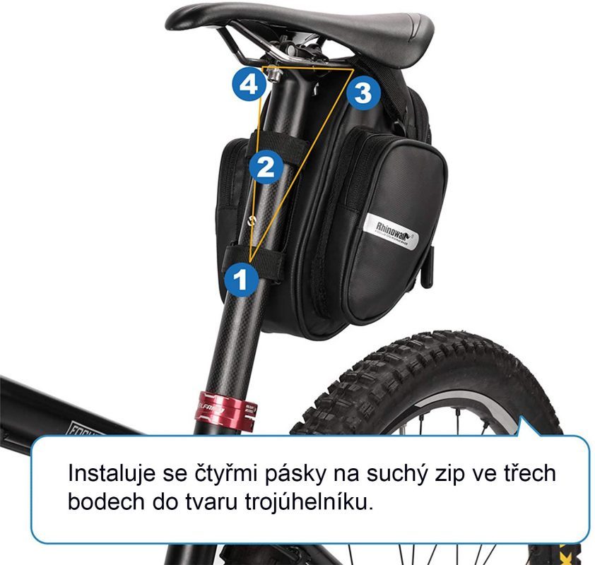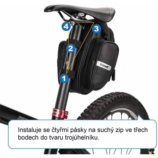 A táska könnyen telepíthető 4 tépőzáras pánttal.