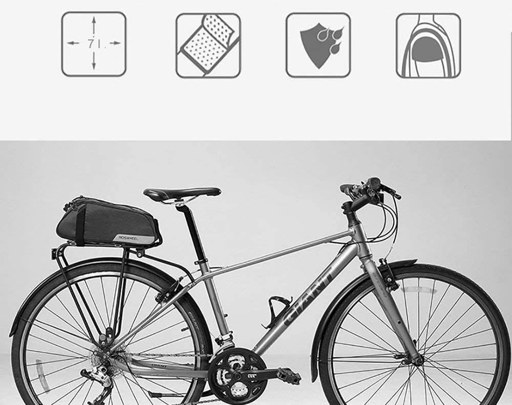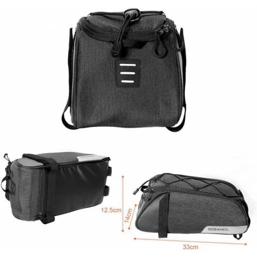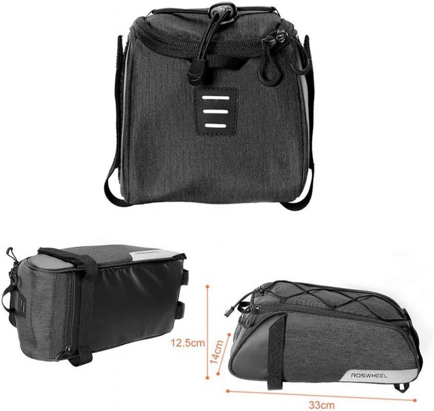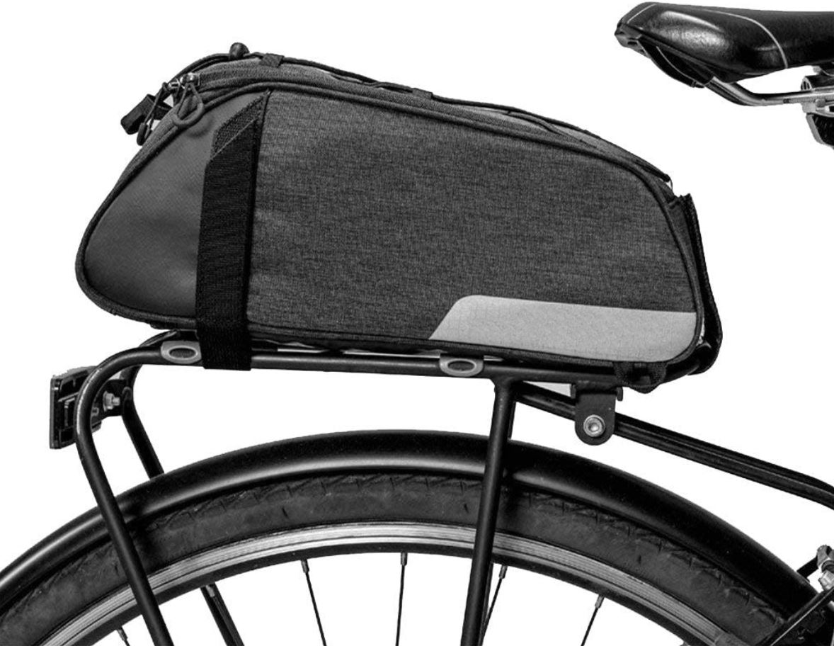 A csomag egy táskát tartalmaz a hátsó csomagtartóra.