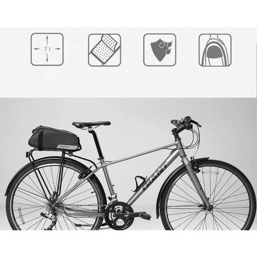 Praktikus táska a hátsó csomagtartóra kerékpározás közben, tartós poliészterből készült, amely környezetbarát és ellenáll a károsodásnak.