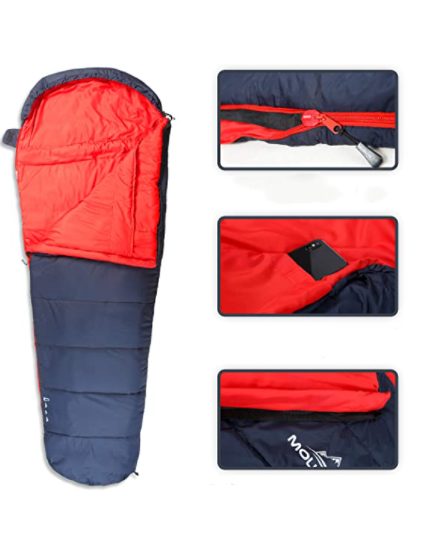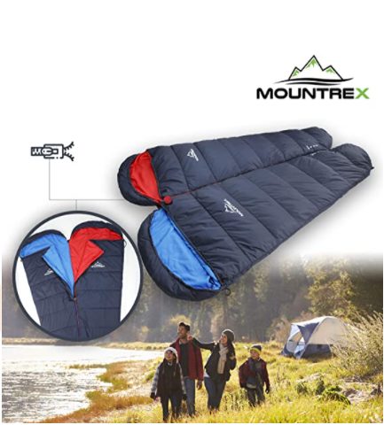 Lehetőség van egy második Mountrex hálózsák csatlakoztatására (a piros változat a jobb oldalon, a kék a bal oldalon zipzárral rendelkezik)