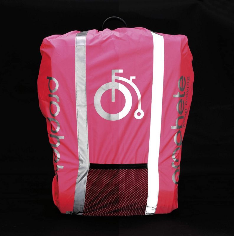 A csomag egy poncsót tartalmaz reflektív elemekkel kerékpáros kosárra vagy táskára.