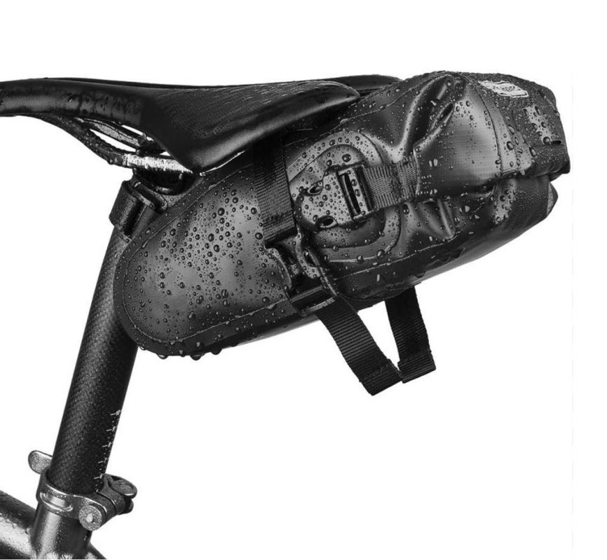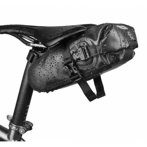 Rolható táska 1,5 literes méretben nyereg alatt, kettős oldalon erős 500D poliészterből, vízálló felülettel.