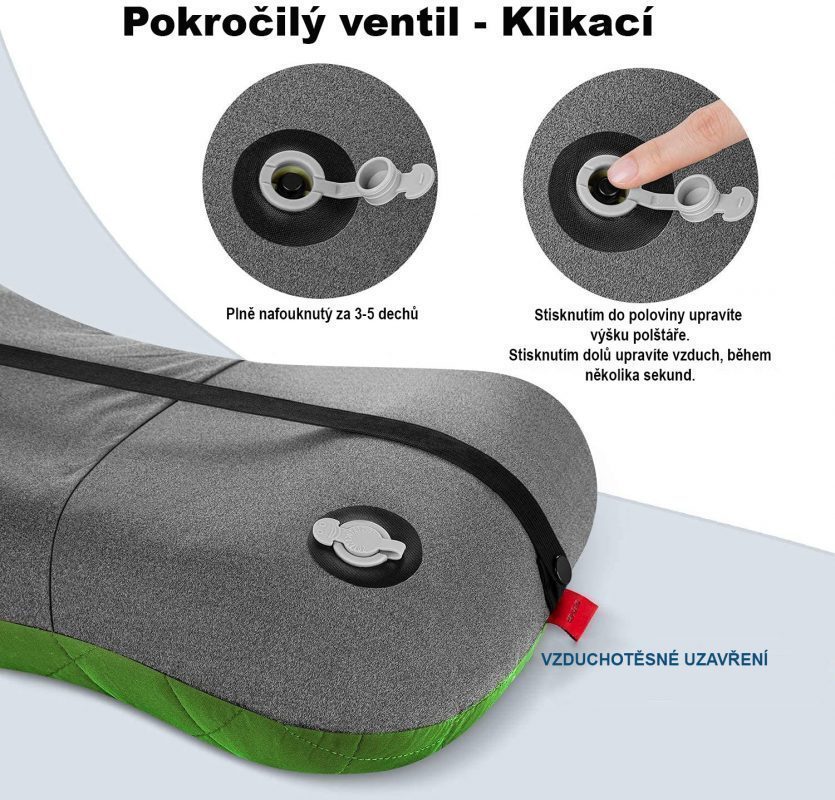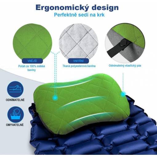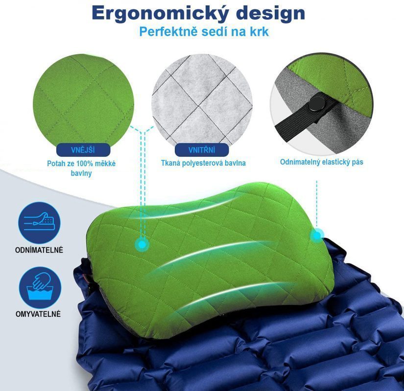 Ergonómikus és csúszásgátló dizájn: Az utazó párna ergonómikus formája maximális kényelmet nyújt kempingezéshez és az utakon egyaránt.