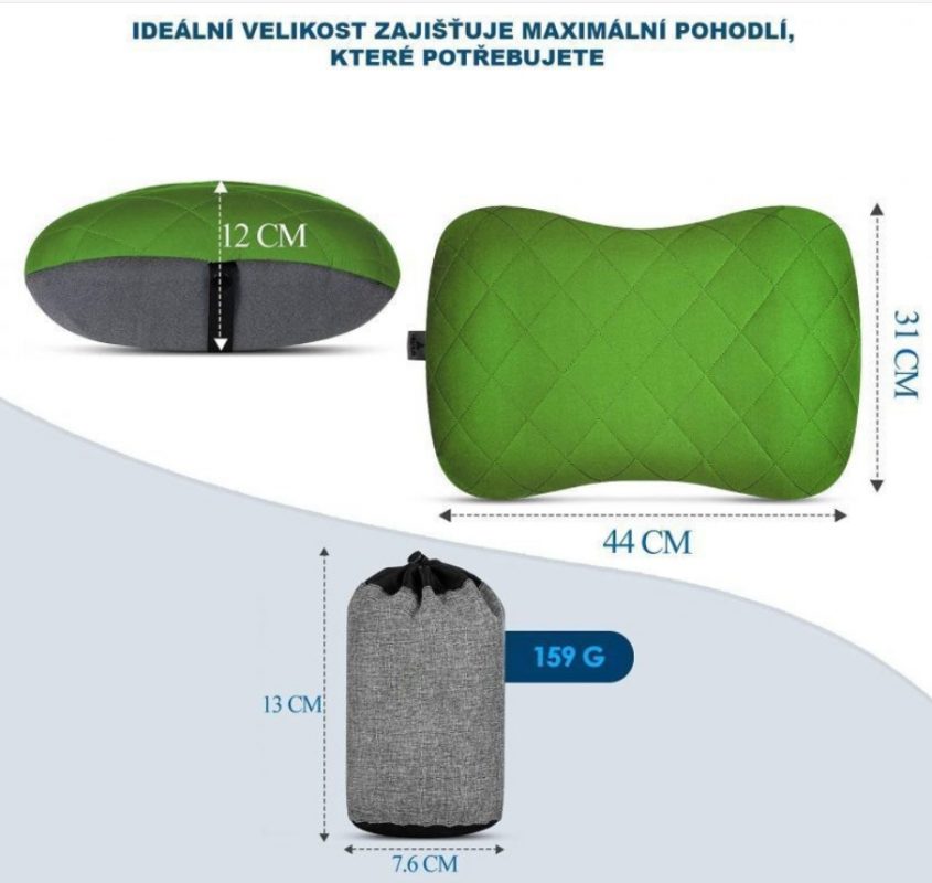 Könnyű és kompakt: A párna mindössze 159 gramot nyom. A csomag praktikus táskát is tartalmaz az egyszerű tároláshoz és szállításhoz.