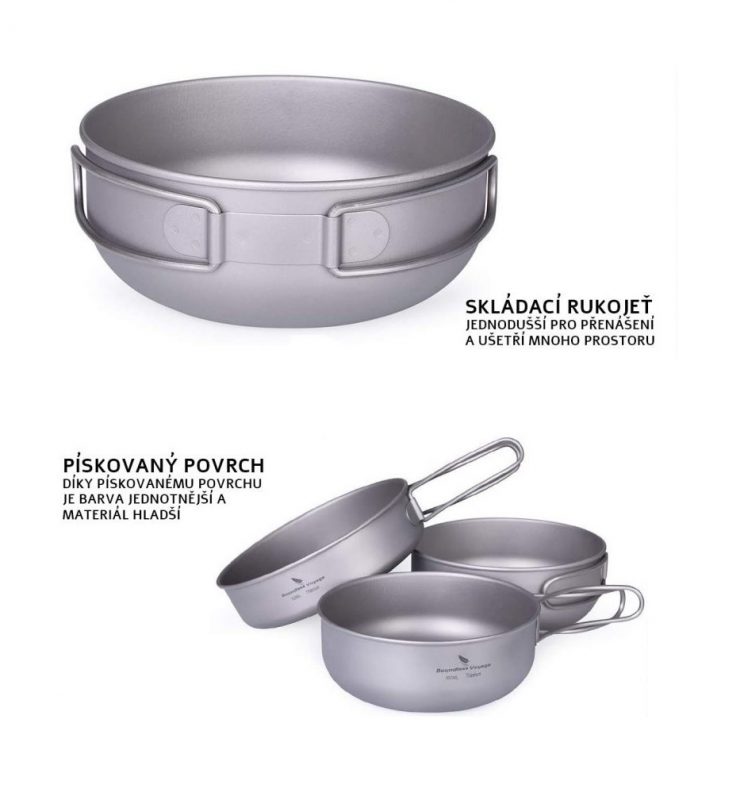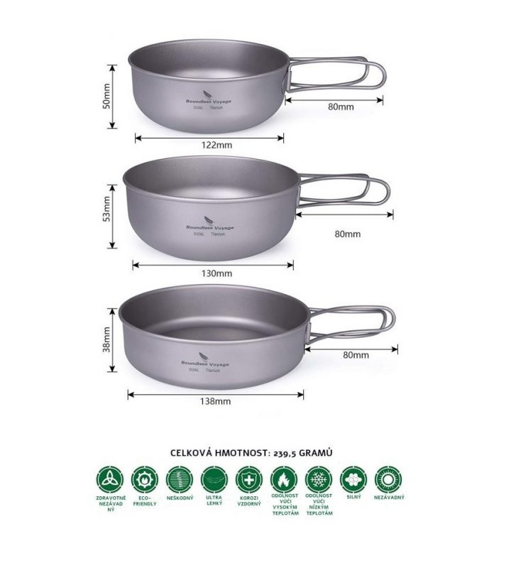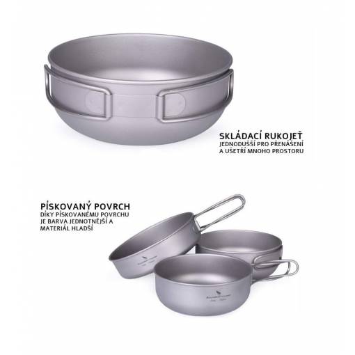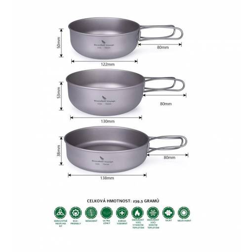 A csomag egy készlet három darab titán edényt tartalmaz.