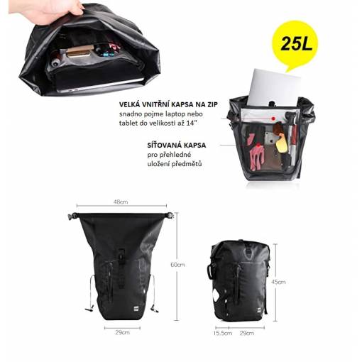 A 25 literes kapacitás elegendő helyet biztosít minden szükségletének, akár kerékpáros túráról, munkából vagy kisebb bevásárlásról van szó.