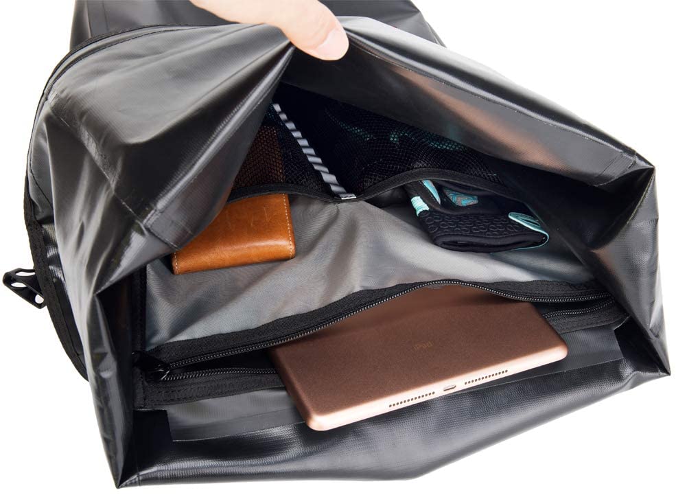 A 100% vízálló anyag és a táska roll-up zárása biztosítja, hogy az Ön dolga szárazon és biztonságban maradjon, függetlenül az időjárástól.