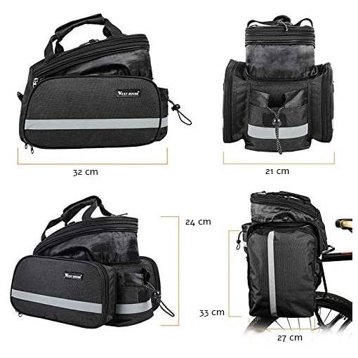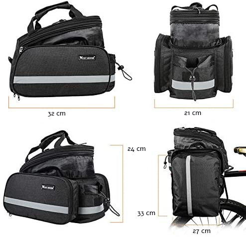 A csomag egy hátsó kerékpáros táskát tartalmaz vállpánttal és esernyő védővel.