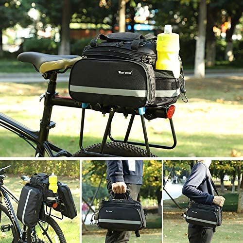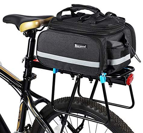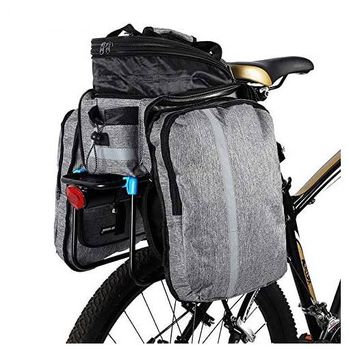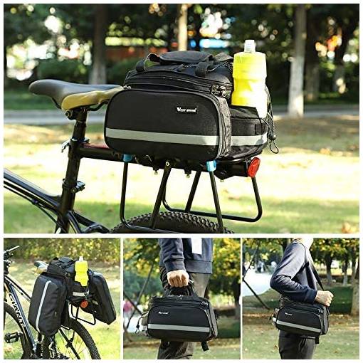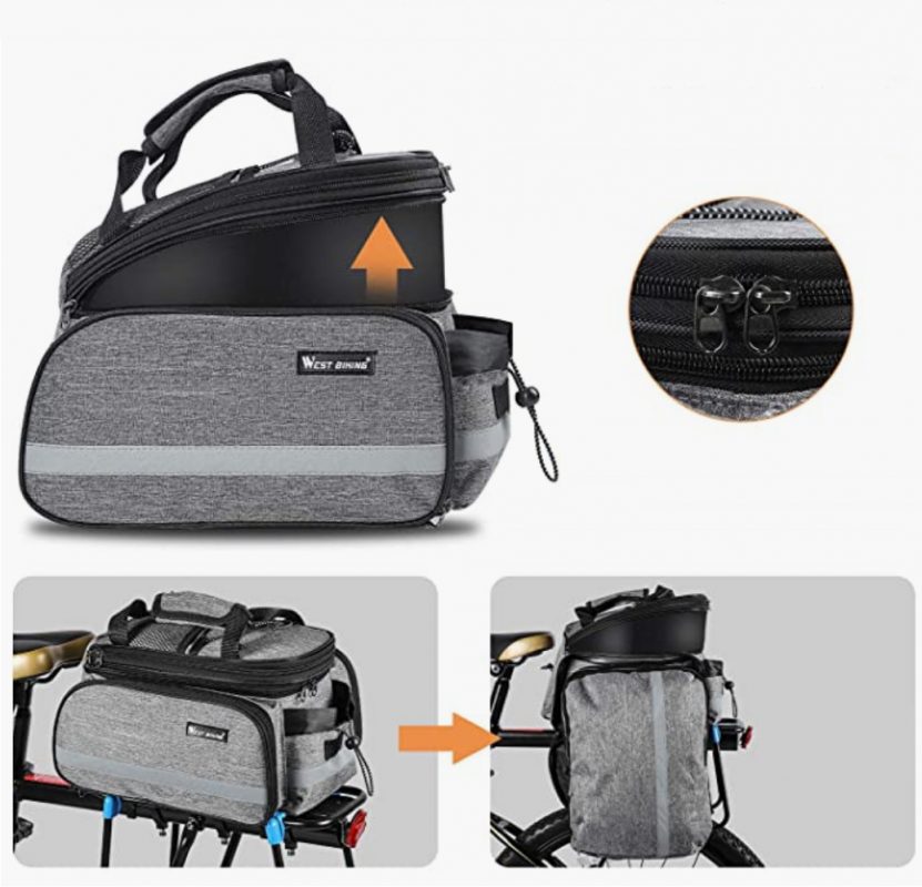A csomag egy hátsó kerékpártartóra alkalmas táskát tartalmaz, vállpánttal és poncsóval.