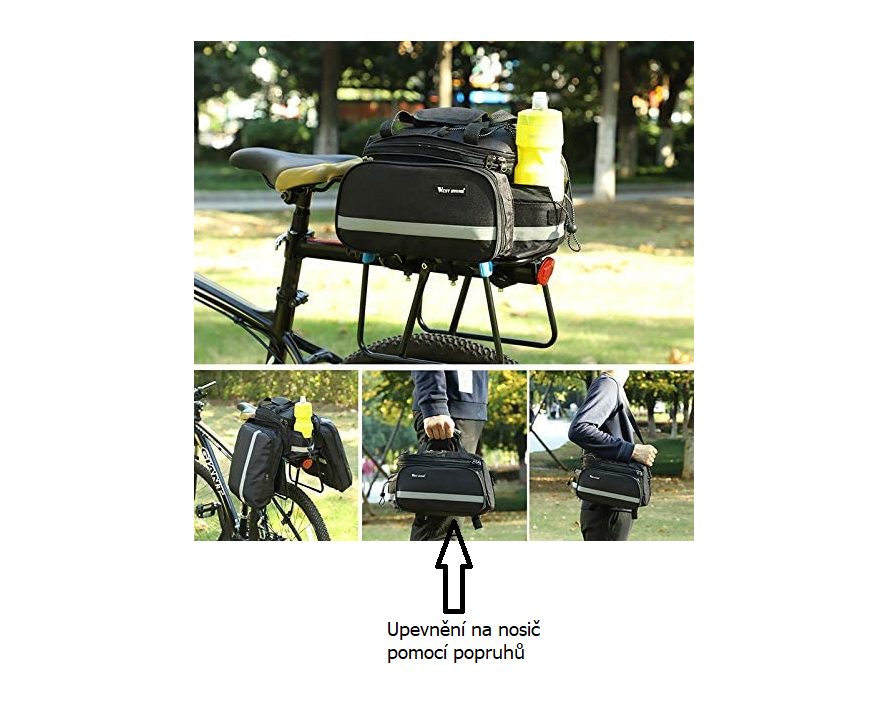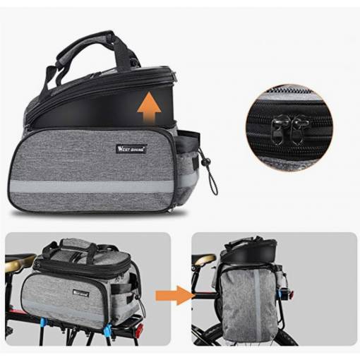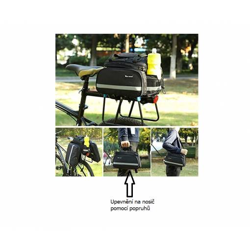 A táska a hátsó kerékpártartóra rögzíthető, száraz cipzárokkal a táska alján.