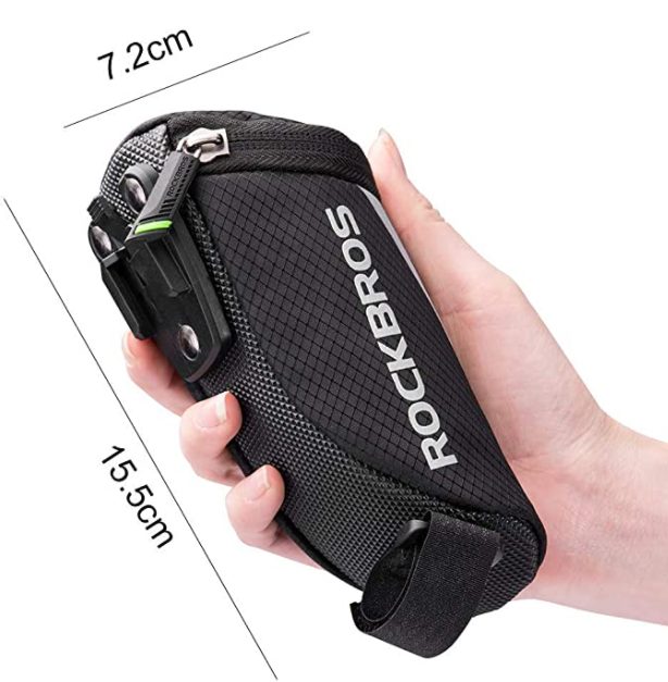 A csomag egy táskát tartalmaz a kerékpár ülés alá.