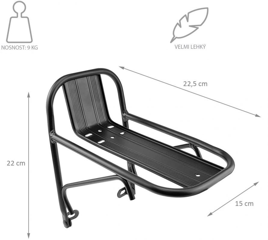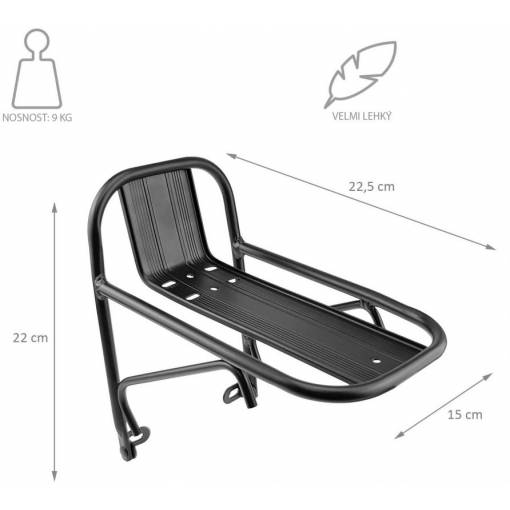 A kerékpár első kosara alumínium ötvözetből készült, amely alkalmas a kerékpárokra, amelyeket a fékek rögzítési pontjain rögzítenek.