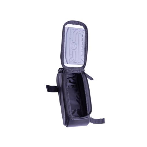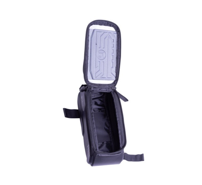 A kerékpáros táska szilárd vázzal rendelkezik, mobilzsebbel 5,8"-os méretig