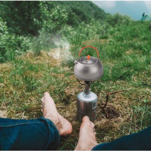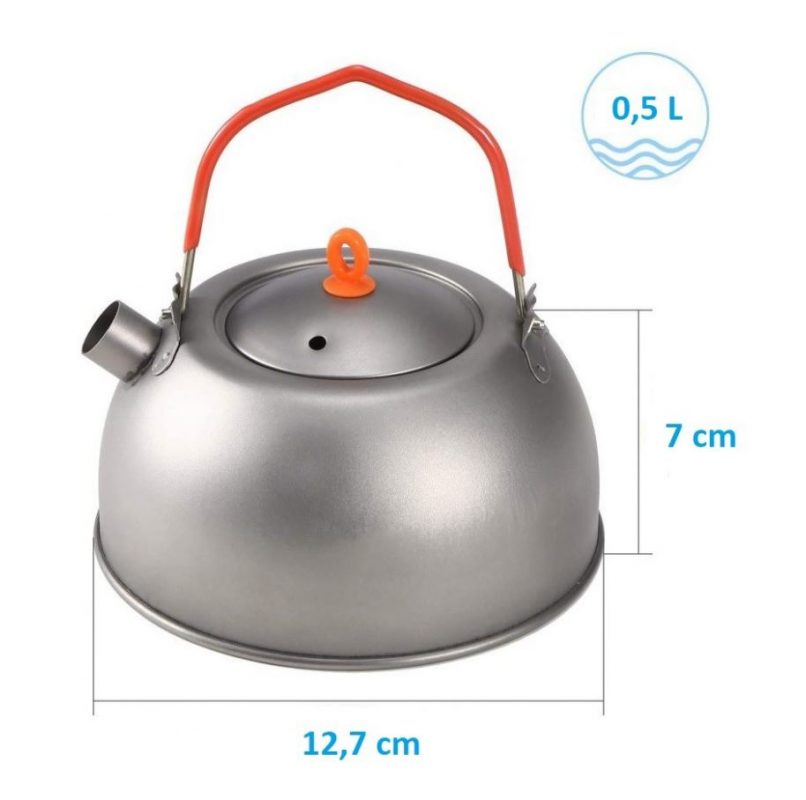 A kemping vízforraló titánból készült, amely ultralegény, hőálló, korrozióálló és kiválóan hosszú élettartamú. Nem hagy semmilyen szagot vagy ízt.