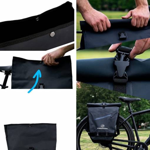 A teljes mértékben vízálló anyagnak és a táska roll-top záródásának köszönhetően tartalma szárazon és biztonságban marad, függetlenül az időjárástól.