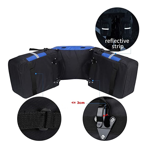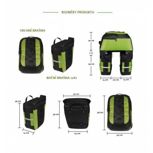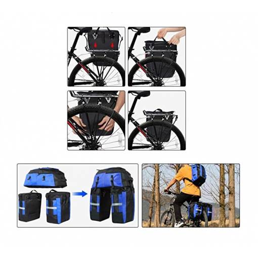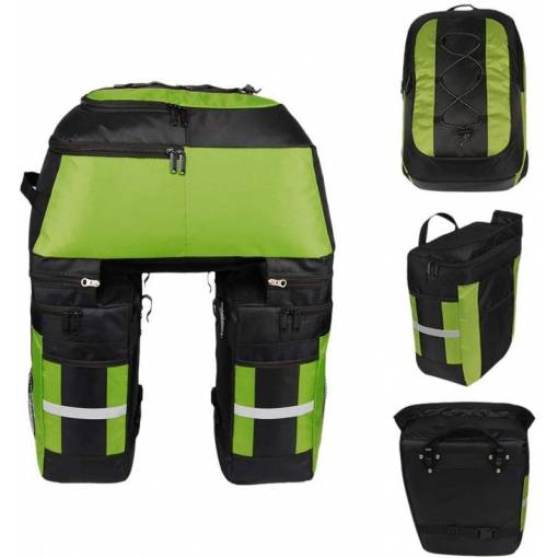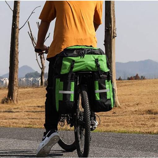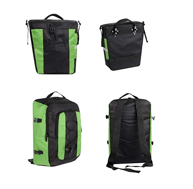 Két tágas oldaltáskát magában foglal, amelyeket a hátsó kerékpártartóra lehet akasztani, és egy praktikus levehető hátizsák, amely minden szükséges felszerelést el tud venni, az édességektől a ruhákig és az élelmiszerekig.