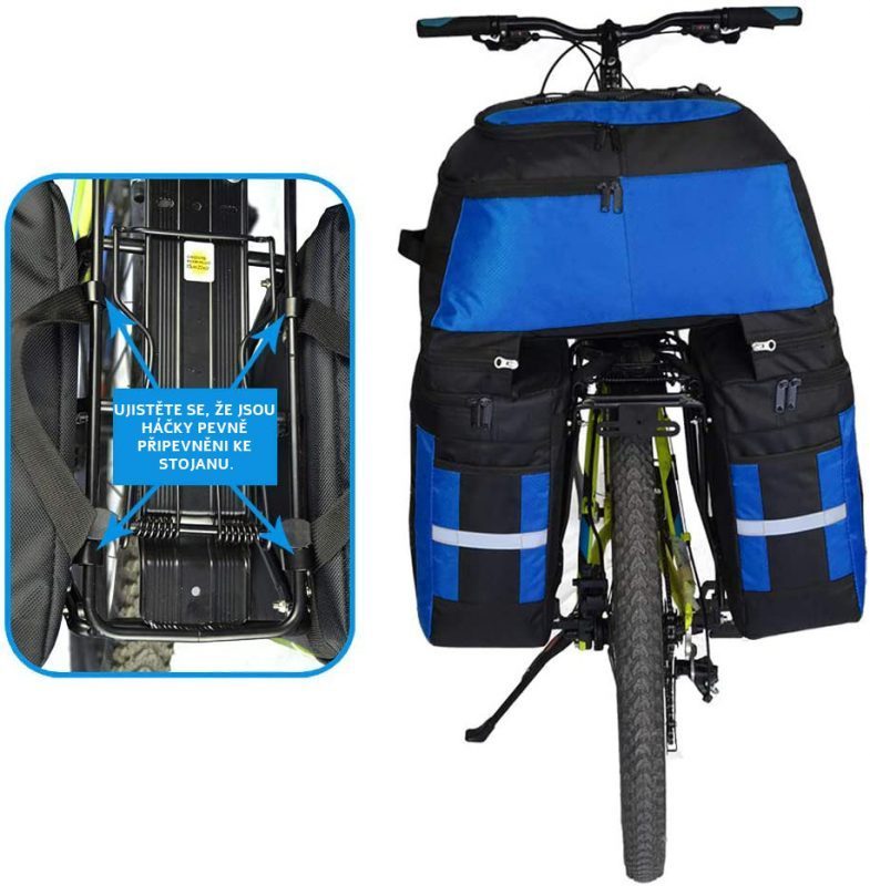 A 3 az 1-ben multifunkciós kerékpártáska 70 literes kapacitásával ideális megoldás hosszabb kerékpáros túrákhoz.
