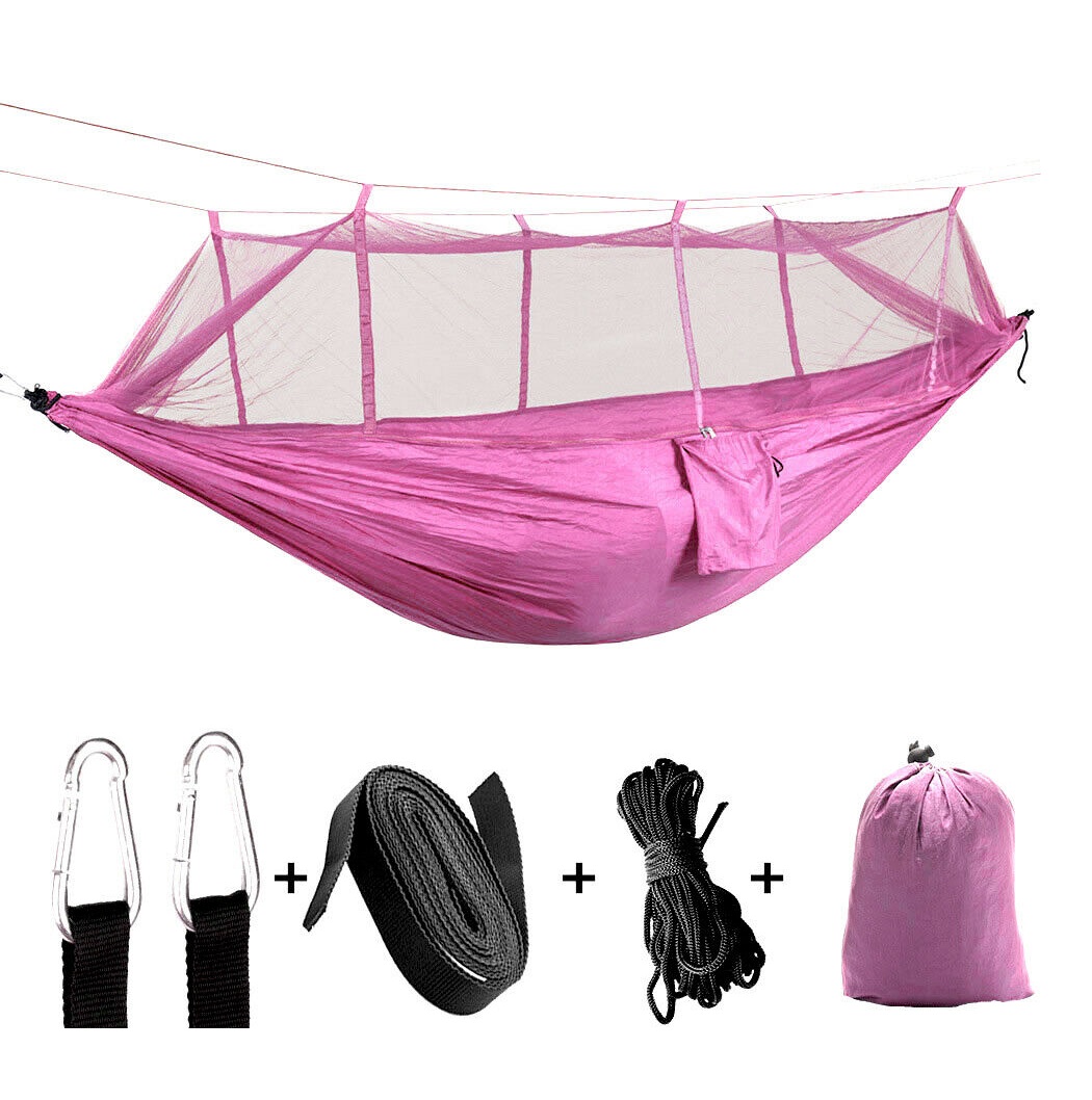 Függőágy szúnyoghálóval: Kiváló minőségű, légáteresztő poliészter hálóból készült szúnyoghálós függőágy, amely megvéd a bosszantó rovaroktól.