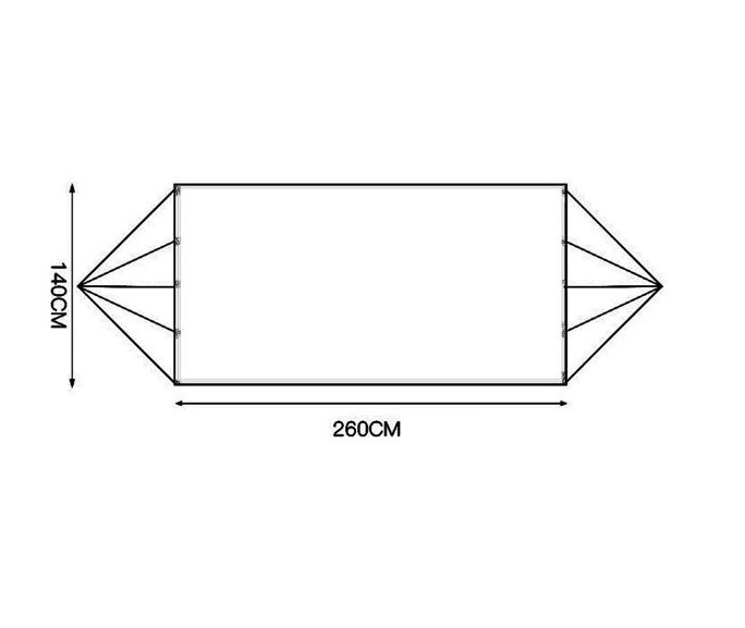 A függőágy méretei: 260 x 140 cm