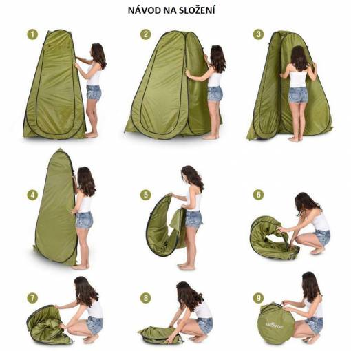 A hordozható sátor a magánélet védelméhez kiválóan alkalmas kültéri zuhanyzónak, vécének, öltözőfülkének stb.