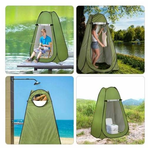 A hordozható sátor a magánélet védelméhez kiválóan alkalmas kültéri zuhanyzónak, vécének, öltözőfülkének stb.