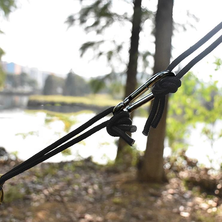 A hámaka két erős karabinert és nylon zsinórokat tartalmaz a felfüggesztéshez.