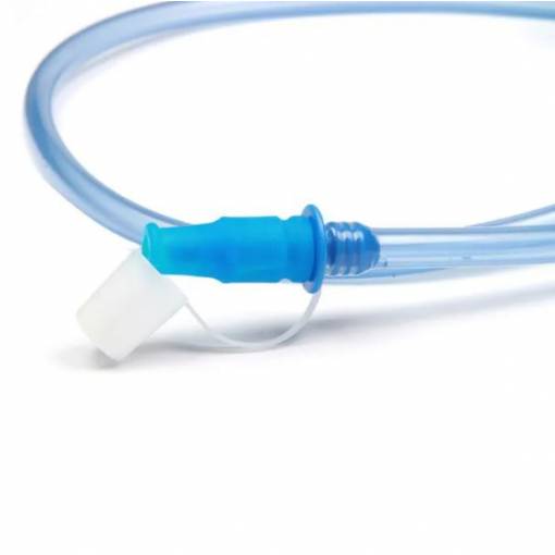 - Csavarja rá a cső végén lévő menetes csatlakozót a víztartályra. Távolítsa el a tömést, és helyezze a szájába. A víz áramlását a szívás / könnyű harapás szabályozza.