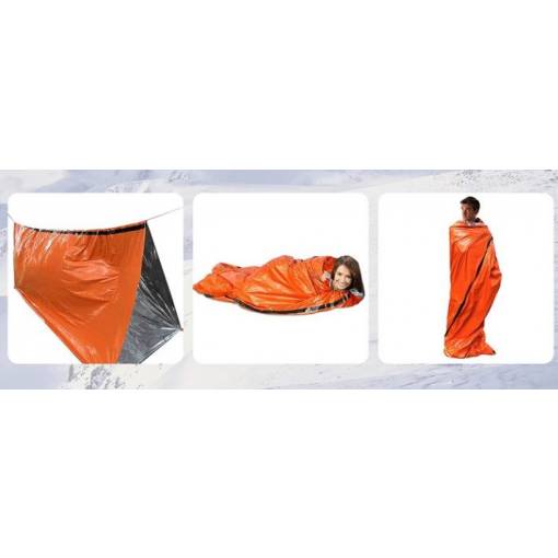 Univerzális: A sürgősségi hálózsák a sürgősségi takaró, a túlélő sátor, a hálózsák alá helyezhető takaró és a vízálló ponyva tulajdonságait egyesíti.