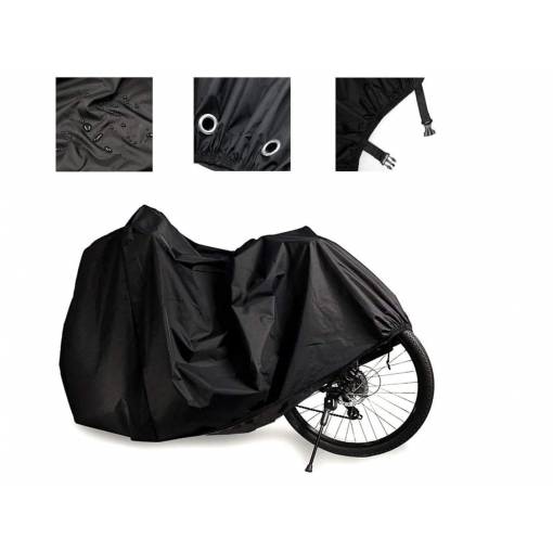 A takaró Oxford 210D anyagból készült, poliuretán bevonattal, amely védi a kerékpárját az esőtől, havatól és a napsütéstől.