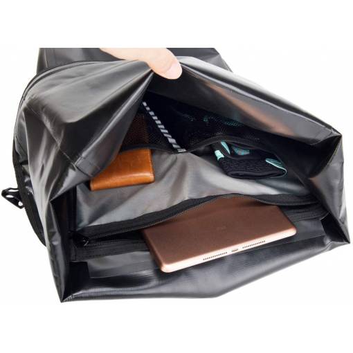 A 100%-ban vízálló anyag és a táska hengertípusú zárása, amely csattal biztosított, megőrzi a holmiját szárazon és biztonságosan, függetlenül az időjárástól.