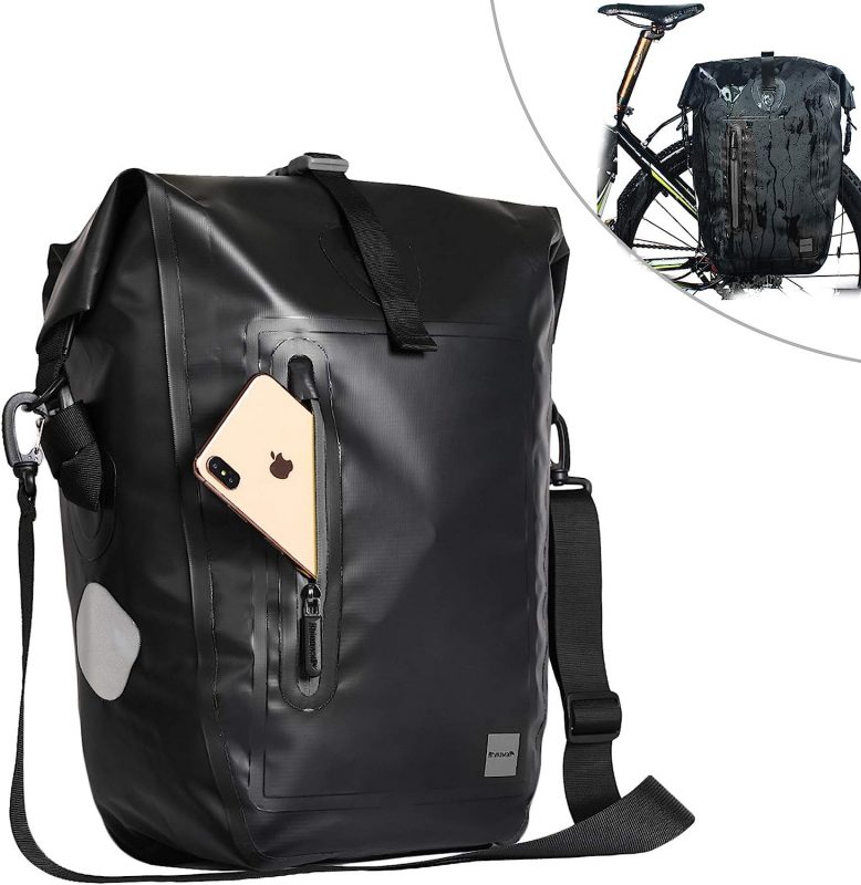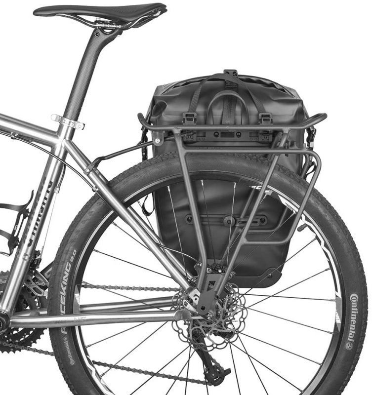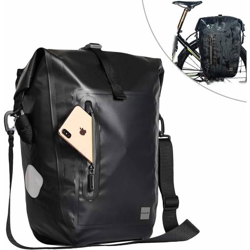 A kerékpáros táska a hátsó tartón van, kiváló minőségű 1000D poliészter szövetből készült, poliuretán bevonattal.