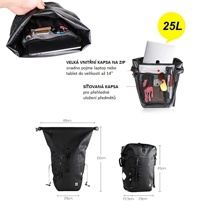 A 25 literes kapacitás elegendő helyet biztosít minden szükséges tárgy tárolásához, akár kerékpáros kirándulásra, munkába vagy kisebb bevásárlásra indul.