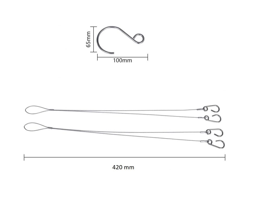 A függő kültéri horgok rozsdamentes acélból készültek, ideális grillrost vagy egyéb kemping felszerelés felakasztására a szabadban való főzéshez.