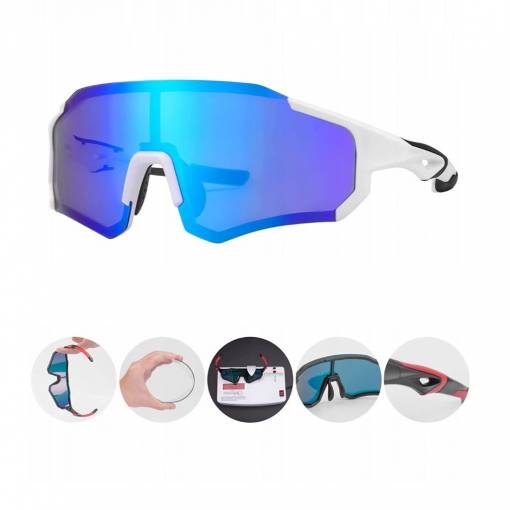 A csomag egy kerékpáros szemüveget, tokot, dioptriás szemüvegkeretet, plusz egy mikroszálas törlőkendőt tartalmaz.