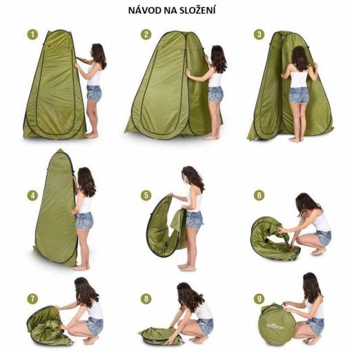 A hordozható sátor a magánélet védelmére kiválóan alkalmas kültéri zuhanyzóként, WC-ként, öltöző kabinként stb.
