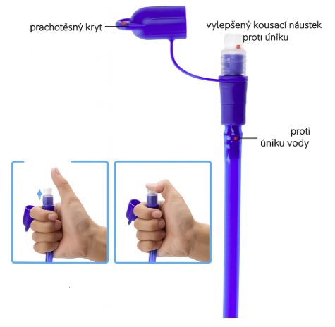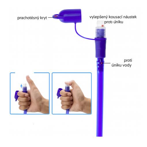 Csavarja rá a menetet a cső végén a hydrobag csatlakozóra. Távolítsa el a szájrész fedelét, és helyezze az ajkai közé. A víz áramlását a szájrész kortyolásával / enyhe harapásával lehet szabályozni.