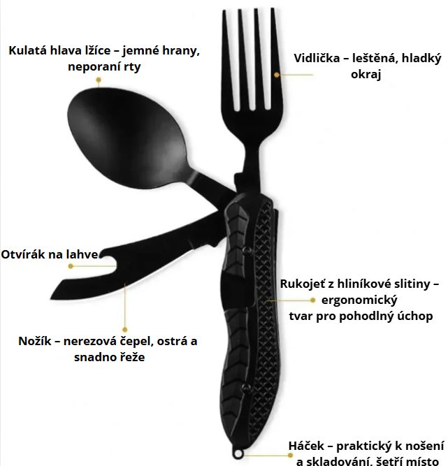 Fedezze fel a praktikus összecsukható 3v1-es evőeszközt, kiváló minőségű rozsdamentes acélból, amely mind a zsebébe, mind a hátizsákjába könnyen elfér.