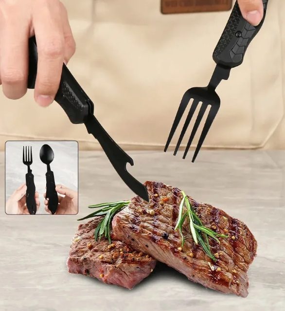 Kempingező összecsukható evőeszköz 3in1