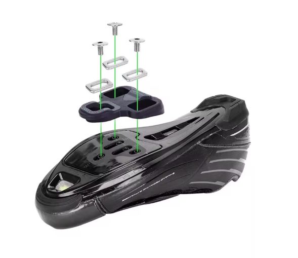 Fekete LOOK Keo cipők biztosítják a stabil rögzítést a cipőkkel a pedálban, mellékmozgás nélkül.