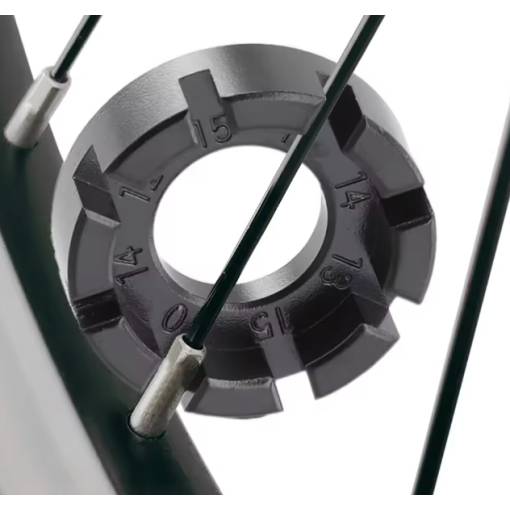 Nyolc nyílással különböző küllőméretekkel bánik, és ideális segédeszköz a kerék központosításához és a felniszereléshez.