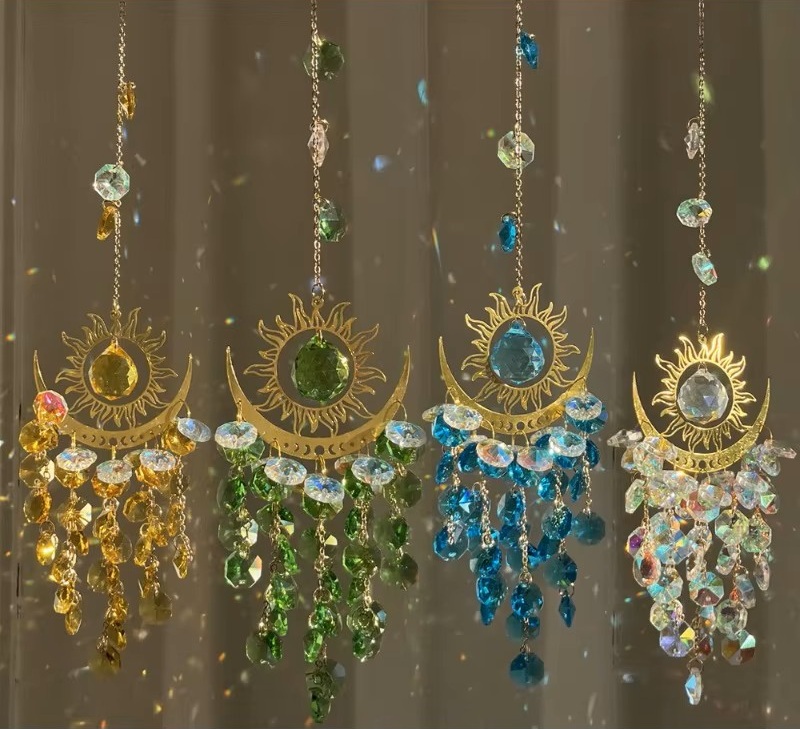 A csiszolt formákból készült játékos üvegfuggony segít aktiválni az energia hatásait otthonunk, kertünk és munkahelyünk térén.