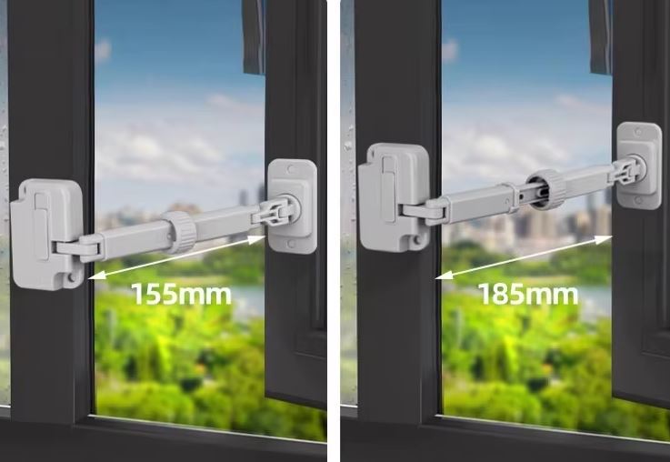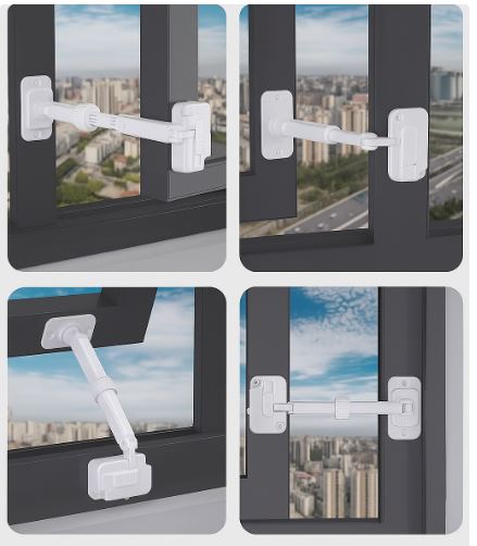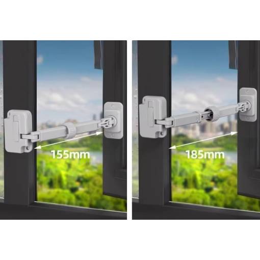 Praktikus és univerzális ablaknyitási korlátozó, amely különböző típusú ablakokhoz - befelé nyíló, kifelé nyíló vagy tolóablakhoz - használható. Lehetővé teszi az ablak részleges nyitását a szellőztetés érdekében anélkül, hogy teljesen ki kellene oldani. Ajtókhoz vagy eszközökhöz is alkalmas.