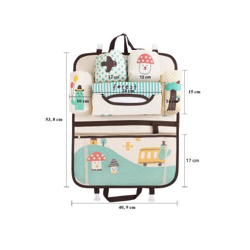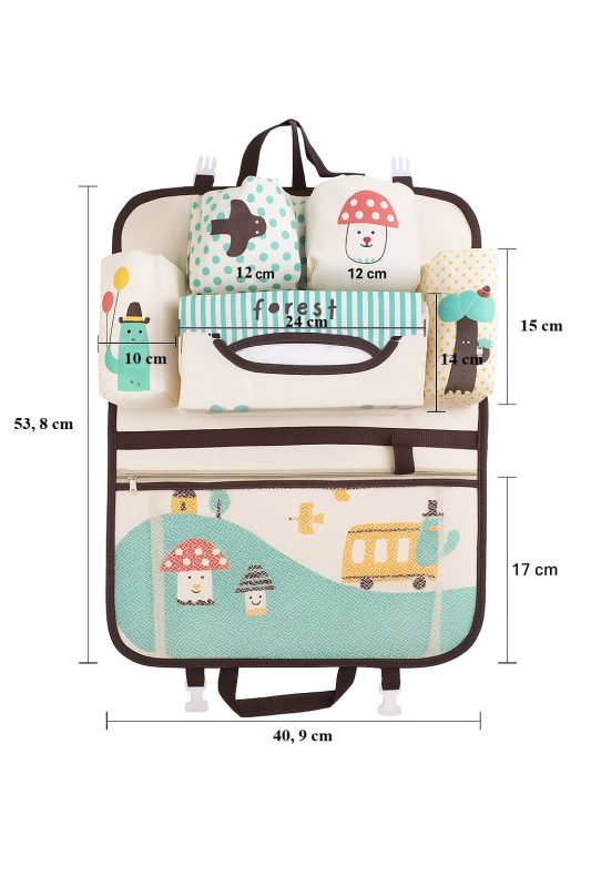 Ez a többfunkciós tároló az autó hátsó ülésének hátoldalán áttekinthető tárolást biztosít az utazások során. A zsebek átgondolt elrendezésének köszönhetően könnyen tárolhatók palackok, szalvéták, tablet, telefon, apróságok, játékok, magazinok vagy egyéb utazási szükségletek. Így segít megőrizni az autó belső terét tisztán és rendezett állapotban.
