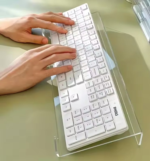 Adjon eleganciát és rendet munkaterületének e modern átlátszó akril billentyűzet állvánnyal.