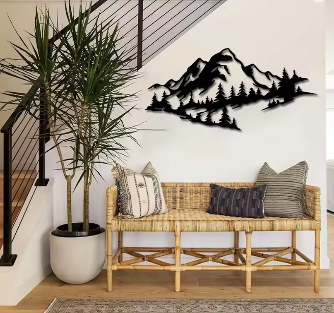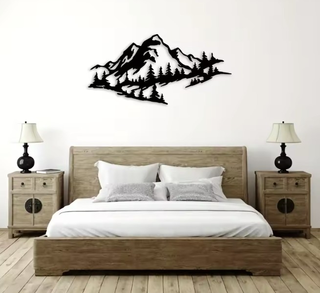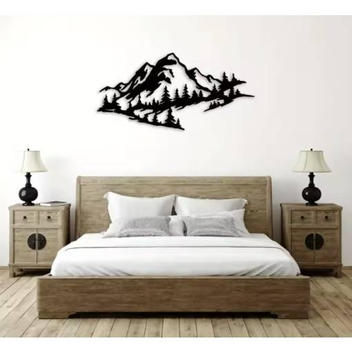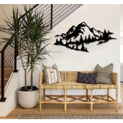 Adjon otthonának nyugalmat és természetes harmóniát ezzel az elegáns fém dekorációval, amely egy fenséges hegyi tájat ábrázol. A precízen kivágott hegyek és tűlevelű fák motívuma lenyűgöző 3D hatást kelt, amely minden belső térben felhívja a figyelmet.