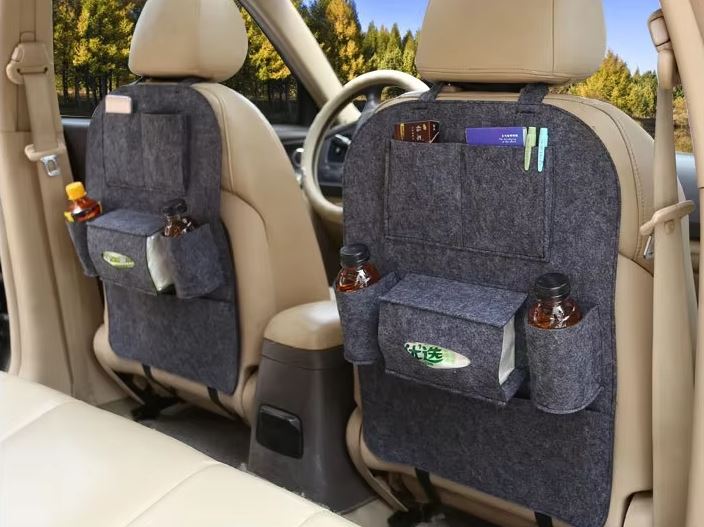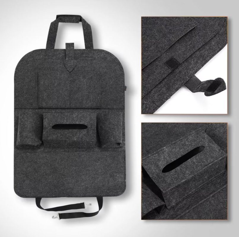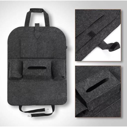 Ez az univerzális rögzítő szervező a hátsó ülés hátoldalára erős, filcből készült anyagból készült, amely ellenáll a kopásnak, könnyen tisztítható és egyben elegánsan hat.