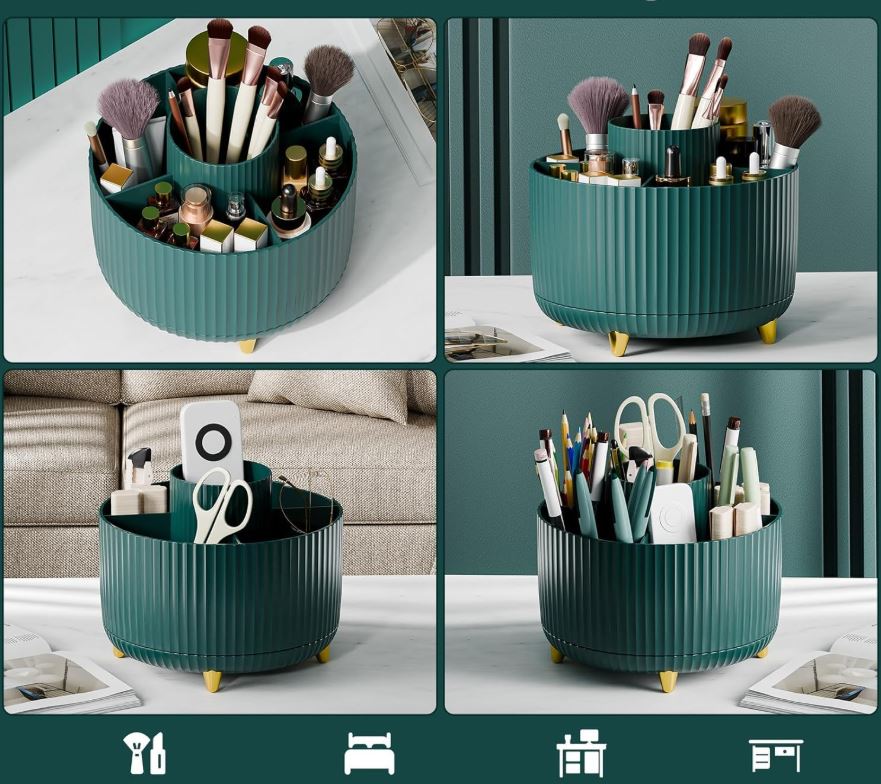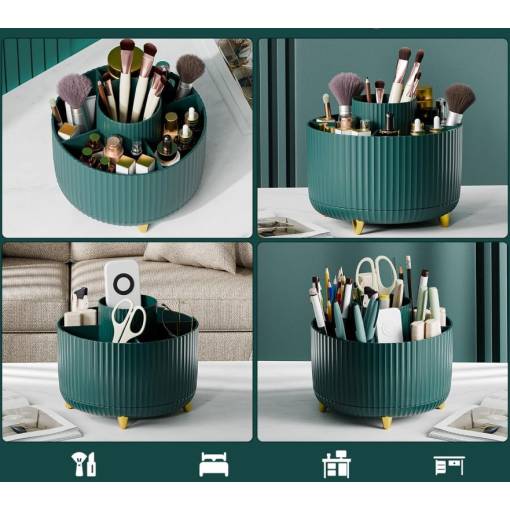 Stílusos és praktikus szervező forgatható alappal, amely segít rendet tartani a sminkasztalon, a fürdőszobában és a munkaasztalon. A 360°-os forgatásnak köszönhetően minden szükséges dolog kéznél van.</p>