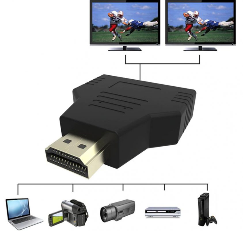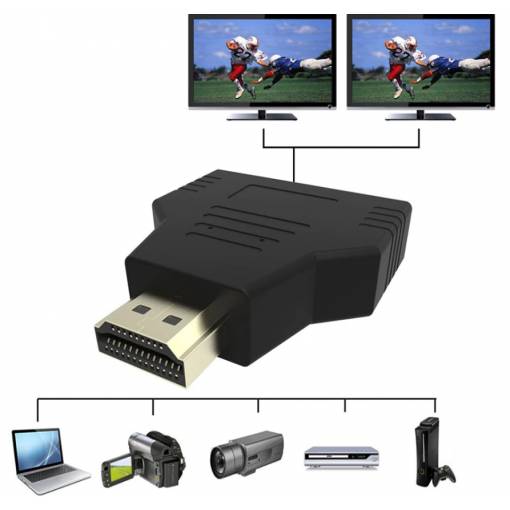 Elsősorban HDMI csatlakozók összekapcsolására szolgál HDMI jel forrásokkal, HDMI hím a kettős HDMI női konverter képes a HDMI megjelenítő eszközök közötti váltásra.