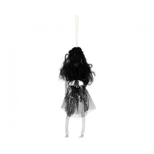 Teremtsd meg otthon a megfelelő ijesztő hangulatot az eredeti függő dekorációval. A figura fekete ruhát visel tüll szoknyával. A hajában színes virág található, ami különös és ijesztő megjelenést kölcsönöz a dekorációnak.